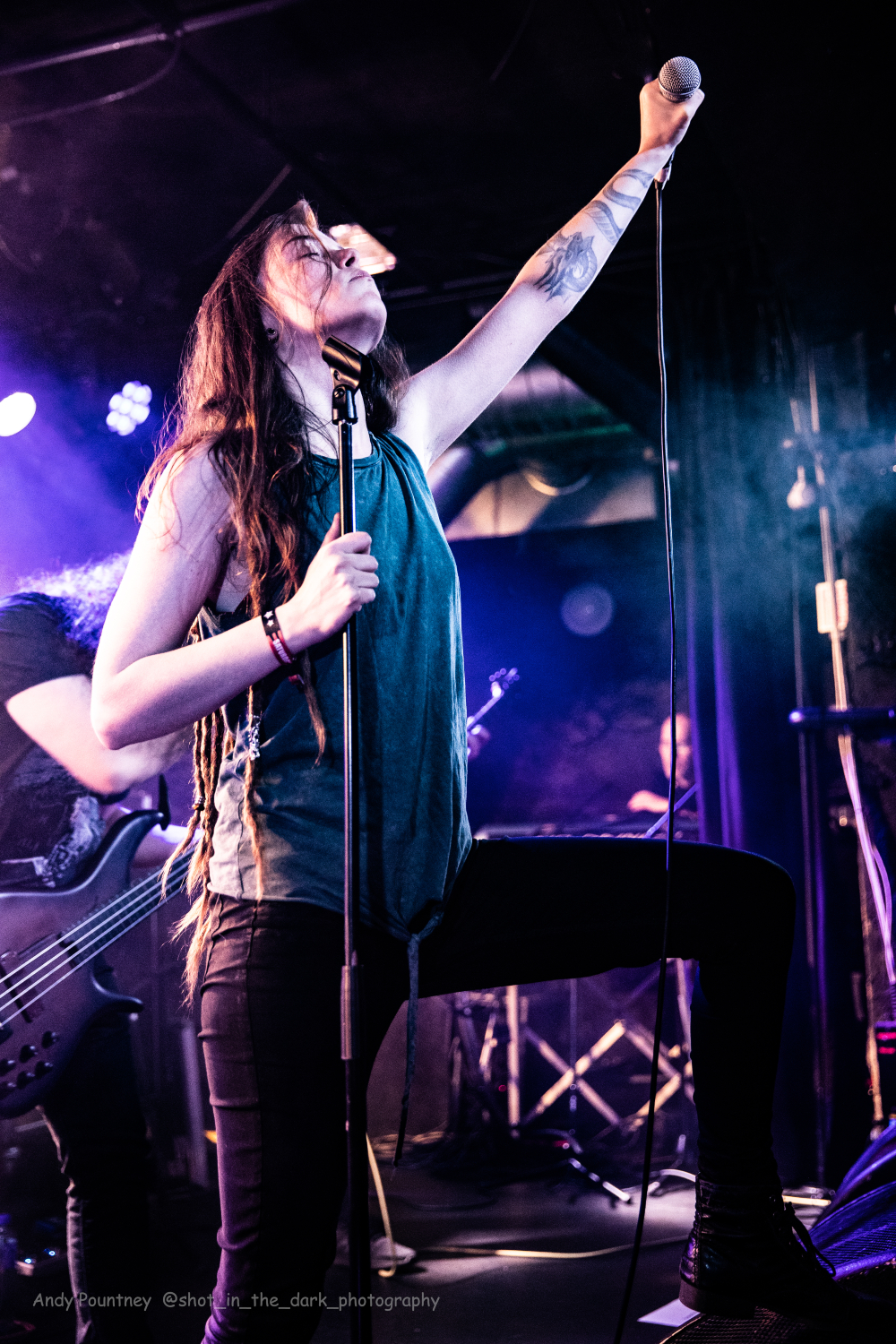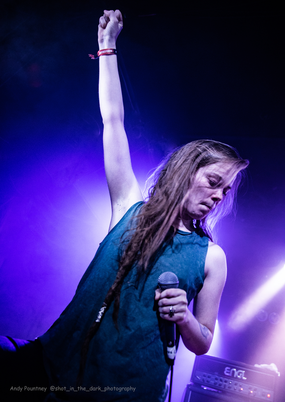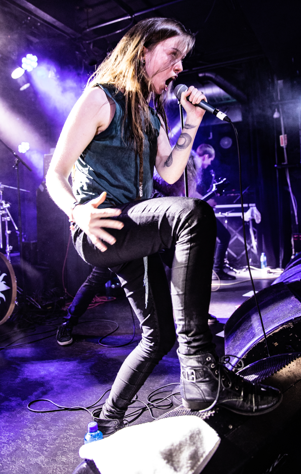 Danish extreme metallers Xenoblight followed, with their rampant thrashy death metal onslaught. Opening with ‘Descension’ and ‘Oblivion’, Marika’s scathing vocals belied her demure appearance as she spat venom across the packed, unsuspecting crowd.