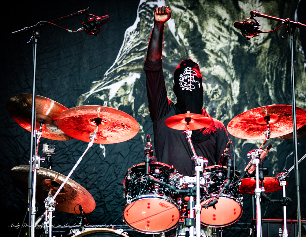 The masked five piece took to the stage and were relentless from start to finish with a massive sound. The focal point of the stage was the microphone stand which had the Gaerea sigil proudly displayed.