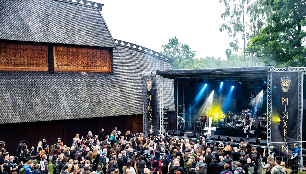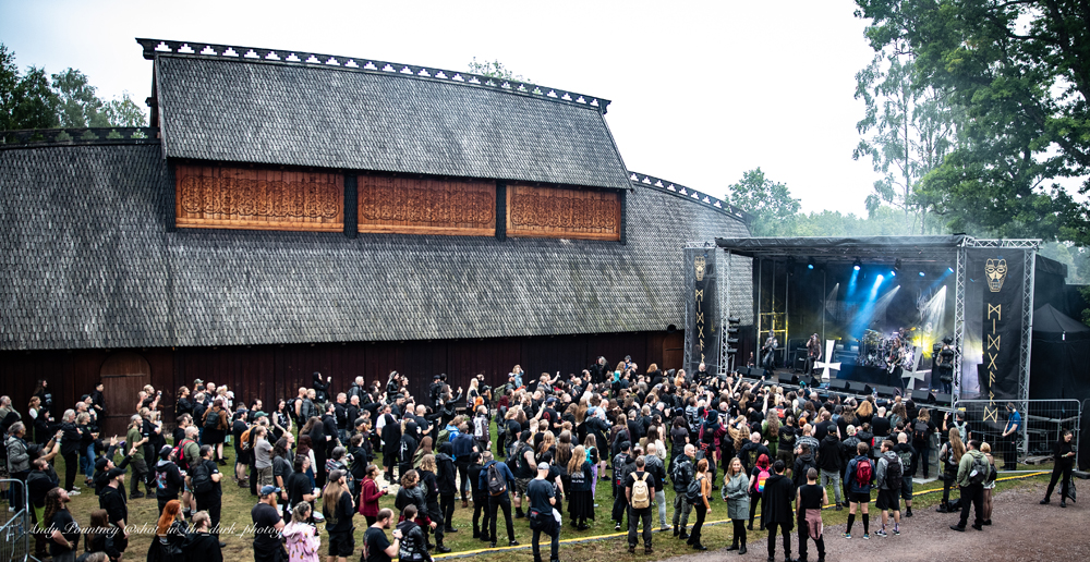 For the final time of the day, I found myself dashing back to the Helheim stage, for the days headliner. I have to admit I have been a fan of Wardruna since my encounter with them back at Midgardsblot in 2016. Since then, I have seen them many times, in several different countries, but nothing compares to experiencing them in this special setting amongst the Viking burial mounds in the shadow of the Gildehallen.