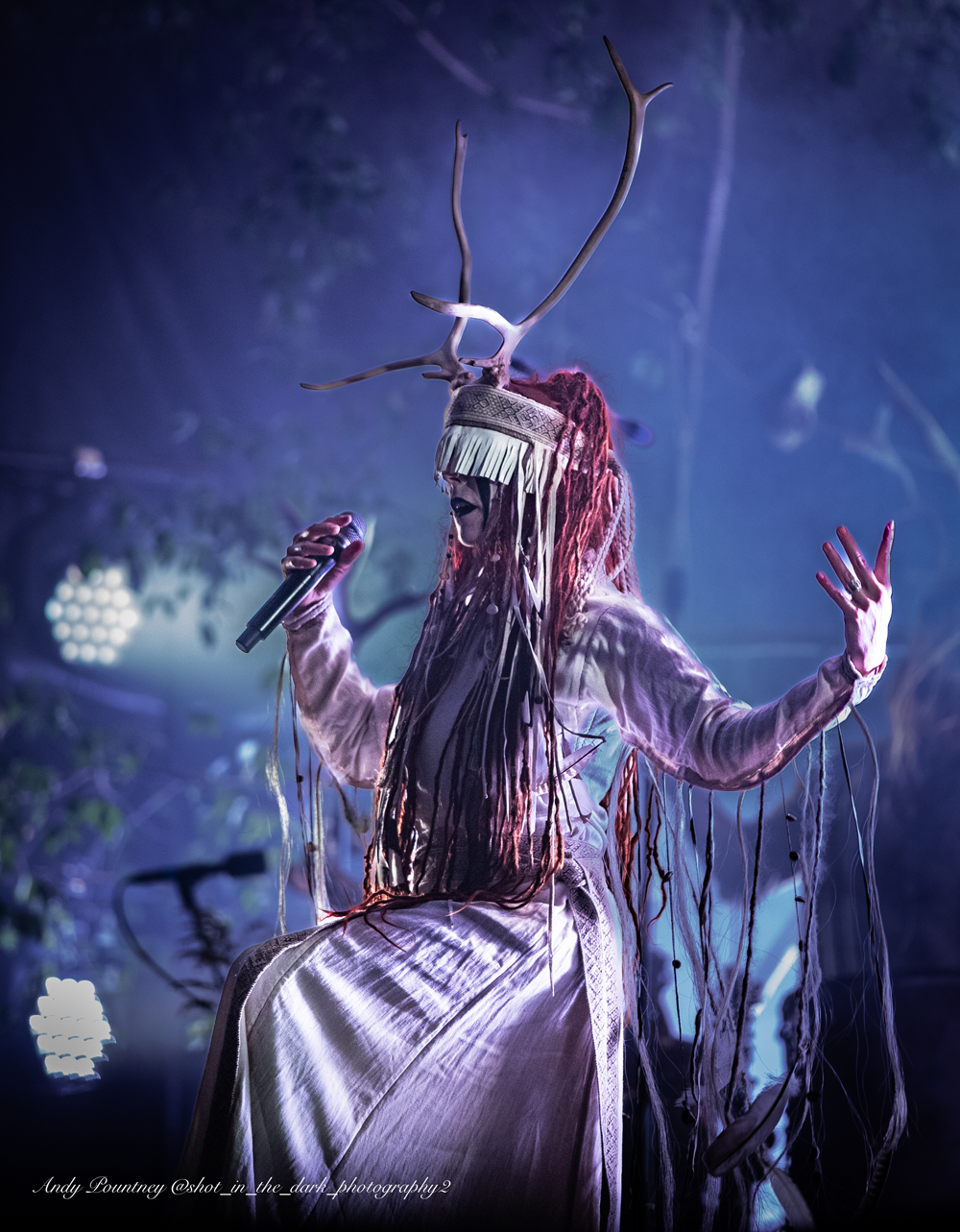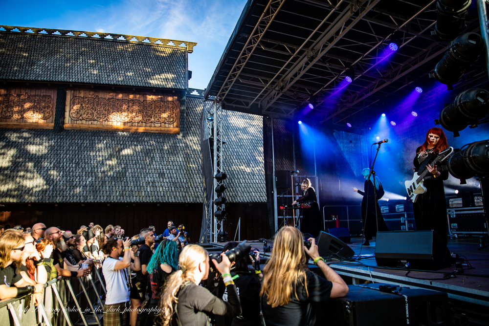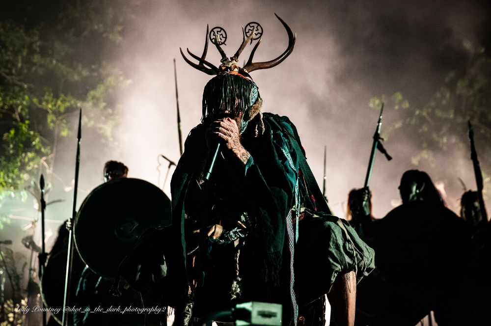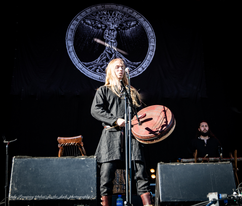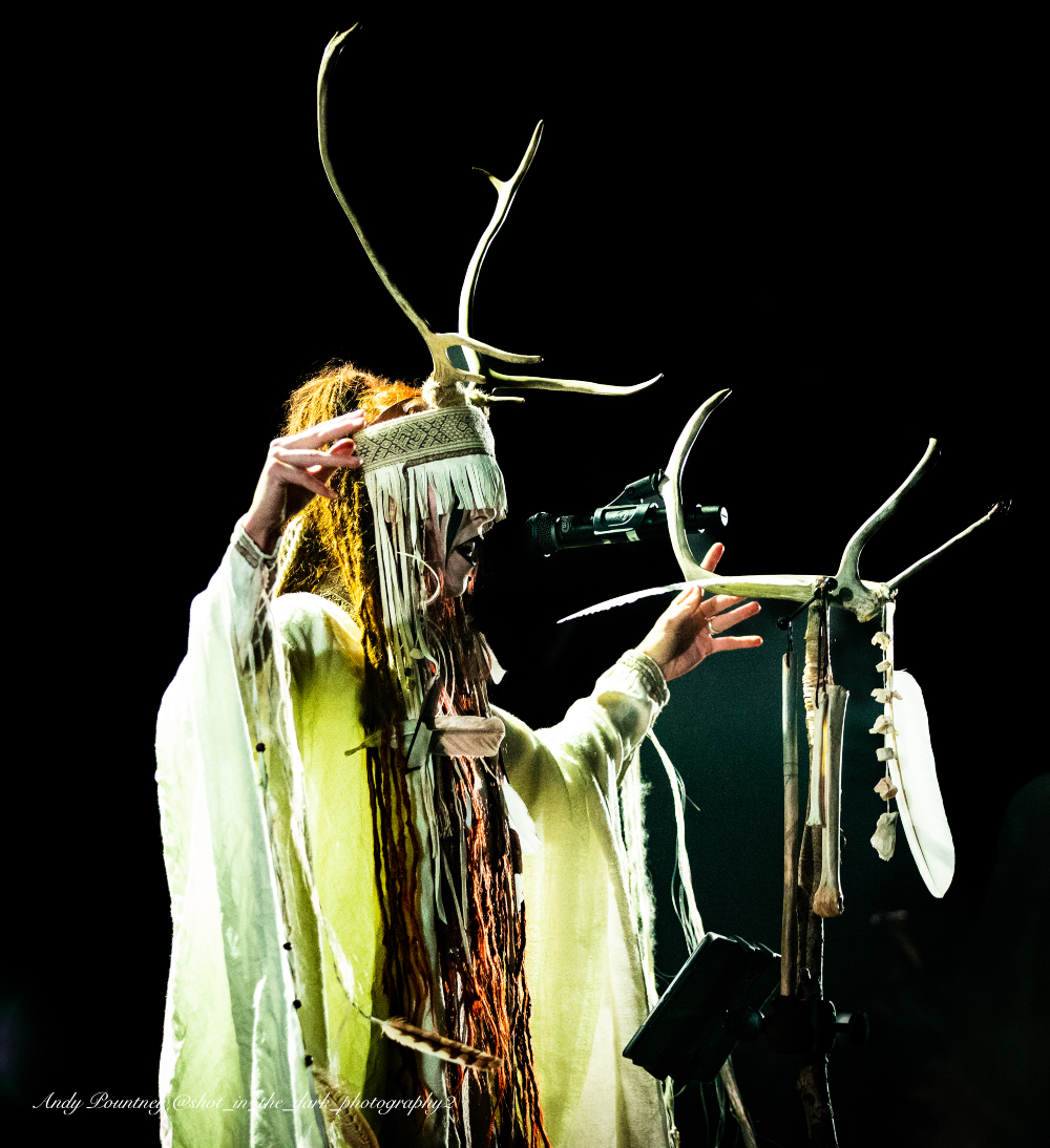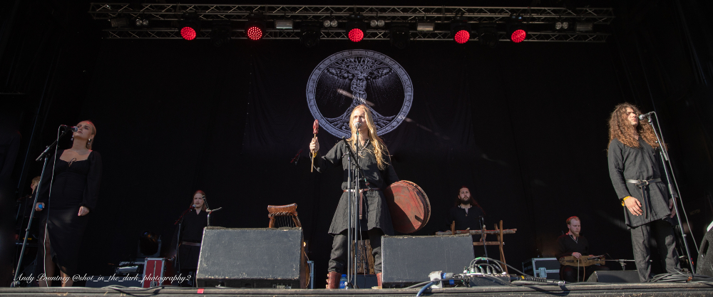 Hypnotic drum rhythms underpin Heilung’s music with traditional instruments, throat singing and Maria Franz’s outstanding vocals. The band had backing vocalists on stage with them and of course a stage set with plenty of foliage and other adornments.