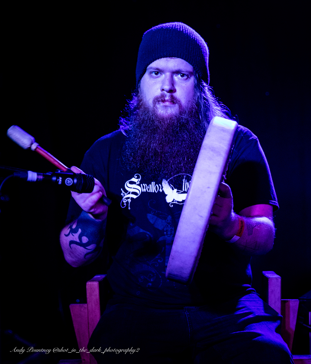 ElvenDale began to day, calling us in by the plaintive horn. Glodi Gyrdson on drum, Hrafn Rikardson on the lyre and vocals/jokes of dubious colour and the magnetic Grace Hulme on vocals. Last time we met it had been their first gig for…a while and nerves, panic attack and self deprecating humour interspersed their lovely dark age music from the mead hall.