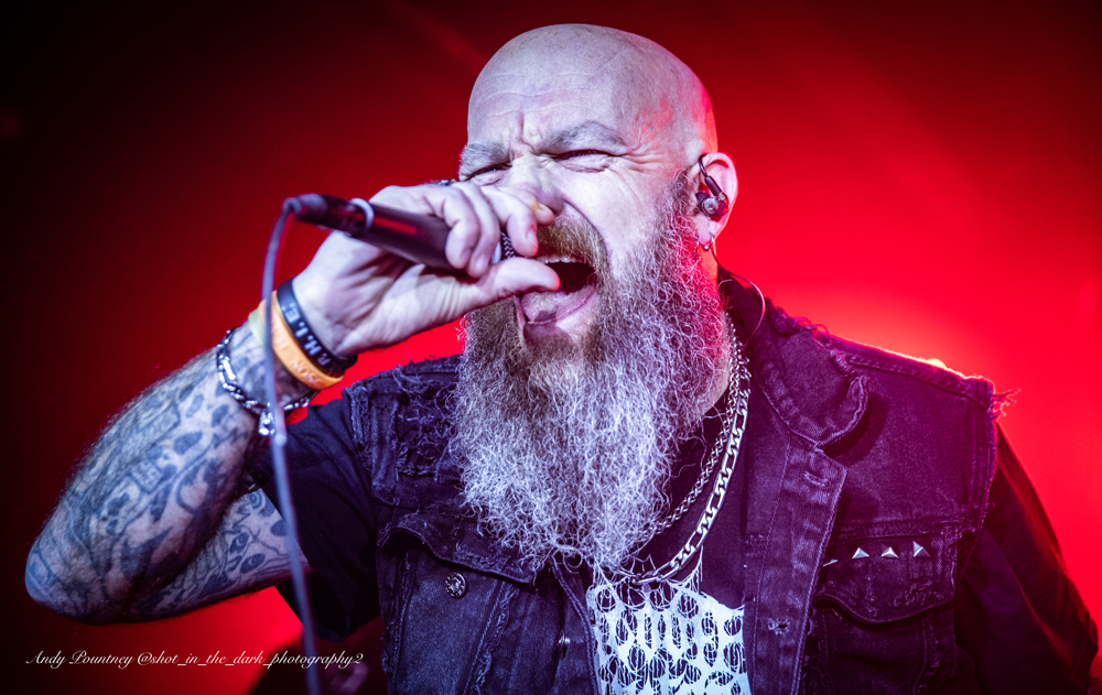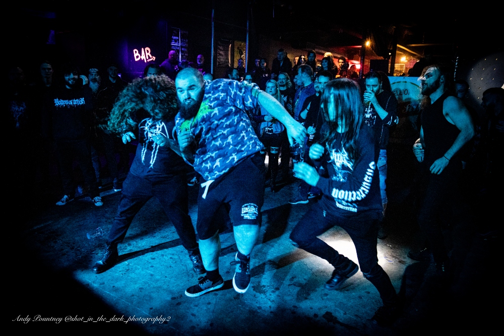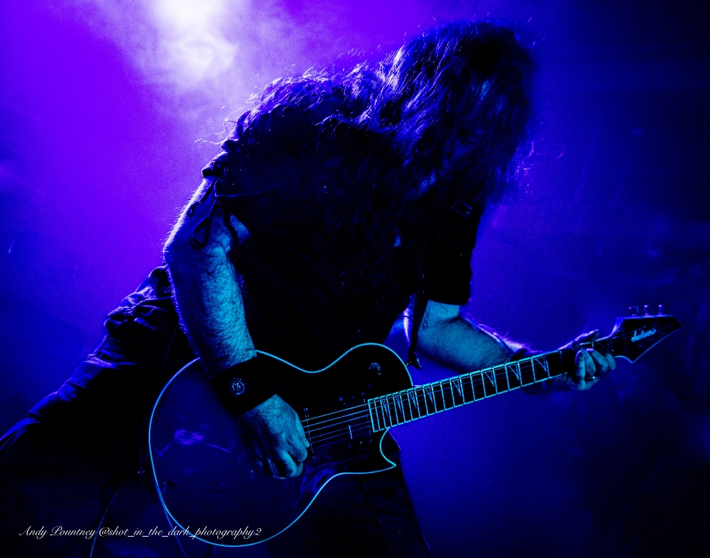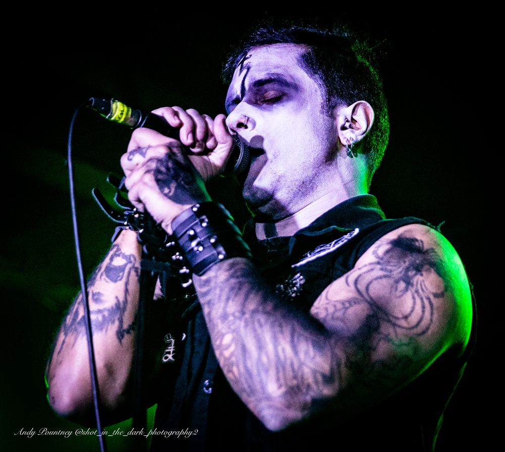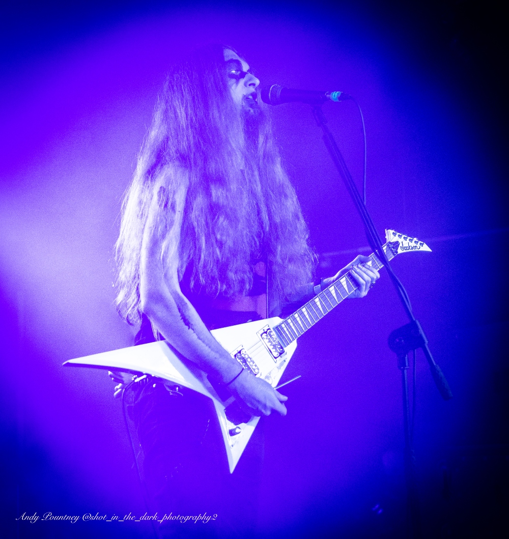 With tight 15 minutes changeovers between bands I wondered who would be the first act to not start on time and/or overrun and I didn’t have long to wait to find out. Hitting the stage in the frigid venue was Birmingham death metallers Infested Angel who I’d seen previously in Leeds in September 2021 who impressed me there and impressed me further with their guttural dismal deathly onslaught. I did think the sound was doing them no favours at first but once you attuned to their rancorous filth it was nigh on perfect.