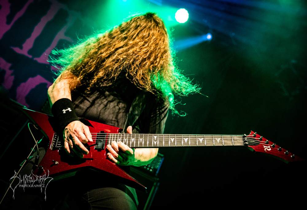 Despite initial guitar problems, the riffing was brutal as the band head banged in unison with the crowd.
