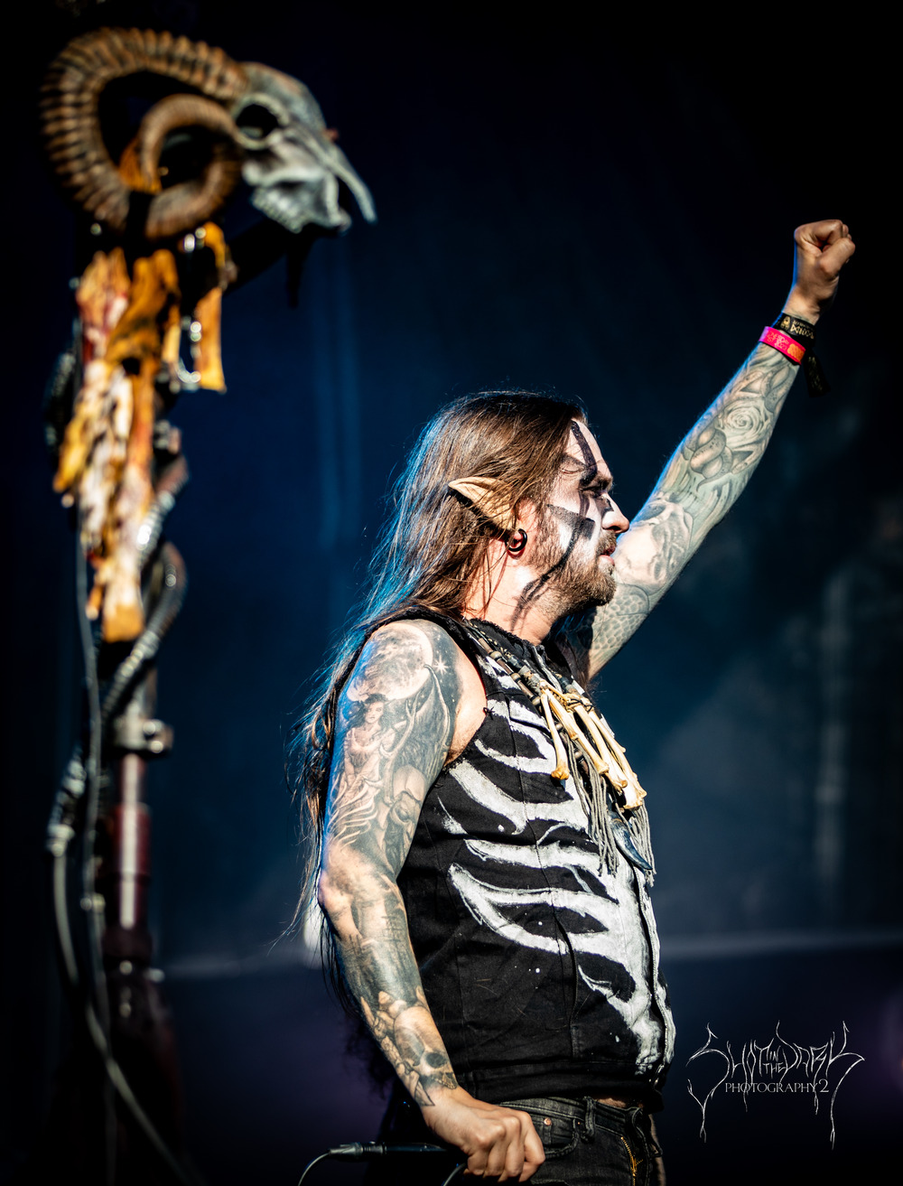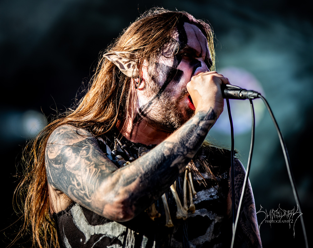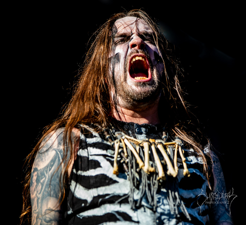 The band wasted no time and were quickly unleashing one ferocious track after another as Dolk stalked the stage like a man possessed. The trees lining the stage area were lit with green and red lights giving a malevolent atmosphere which was perfect for this set.