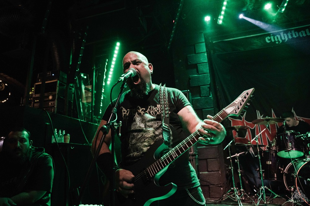 So, I found myself at the Eightball very early in the evening. The night began with the Athenian underground thrash-black metallers “Necrochakal.” Heavy riffs and even heavier vocals were on display. The frontman was constantly headbanging while growling, and the other band members also gave their best performance.
