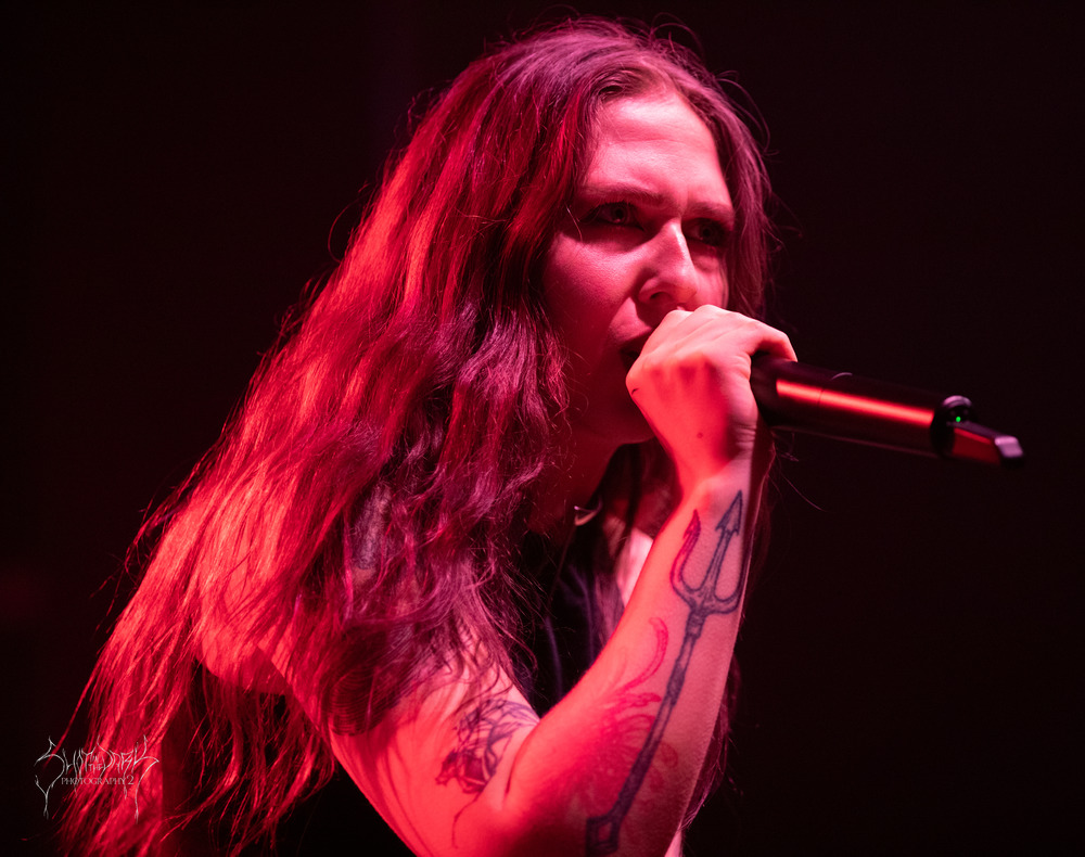 Musically this wasn’t quite my thing but I could appreciate the enthusiasm as vocalist Helle Bogdanova performed deep growls along with a fine clean tone and switching with ease between them much like acts such as Jinjer, Infected Rain and Vexed. ‘Camera Obscura’ followed and had a fine riff I really liked as the band danced enjoying every moment, along with the crowd who seemed very knowledgeable of their material.