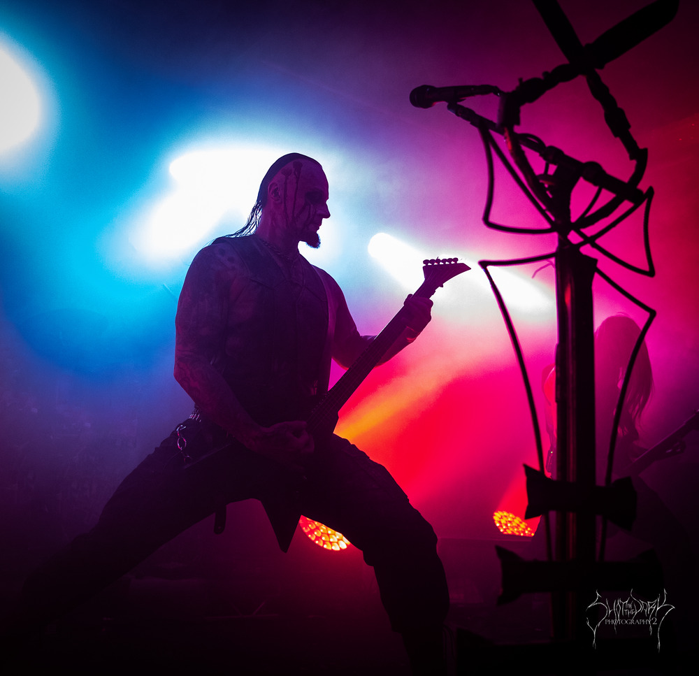 After a long atmospheric intro tape, Belphegor appeared on the dimly lit stage, that was now adorned with various inverted crosses, chains and skulls and a strong smell of incense, before launching headlong into ‘Baphomet’ and ‘The Devil’s Son’.