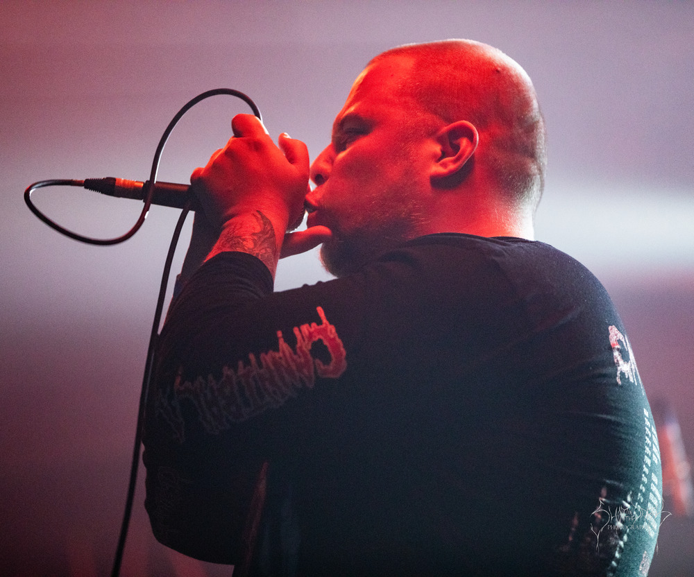 Bathed in red light, their dense yet aggressive sound soon won over the crowd before the set ended all too soon with the crushing duo ‘Bleed’ and ‘Divine Damnation’.