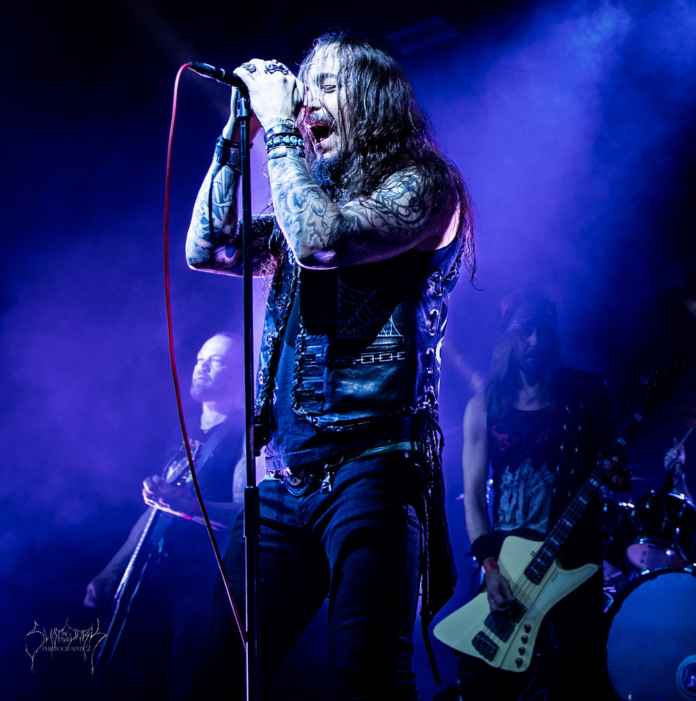 There’s an instant warmth spreading from the weaving melody and it gets fist-pumping reaction from the crowd as the band catch us ‘Under His Sway.’ The sound is natural and uncluttered here, at odds with much of the multi-layered assaults of the day and front-man Merkaal (also of Order Of The Ebon Hand) is a ball of energy working the crowd, getting us clapping along and “heying” away Euro metal style.