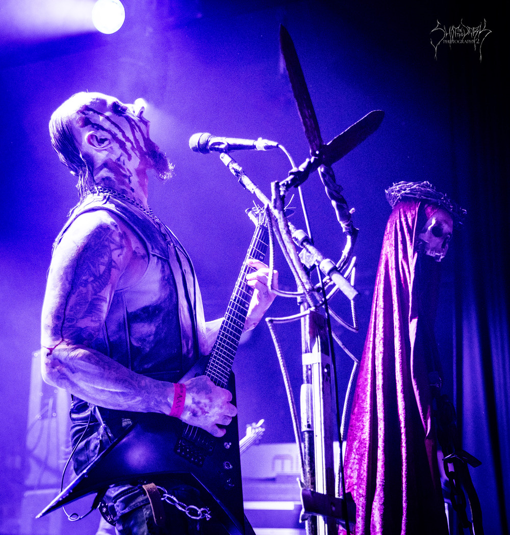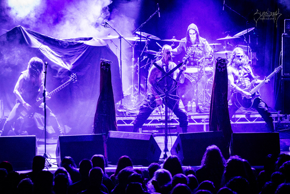 From the self-titled band name track through to ‘Skjend Hans Lik’ with its grim and grimy clamour the band dig in with gritty finesse. At times it is confrontational and the keyboards give things an occasional trollish edge. By ‘Death Triumphant’ the first pit of the day in the venue fires up.