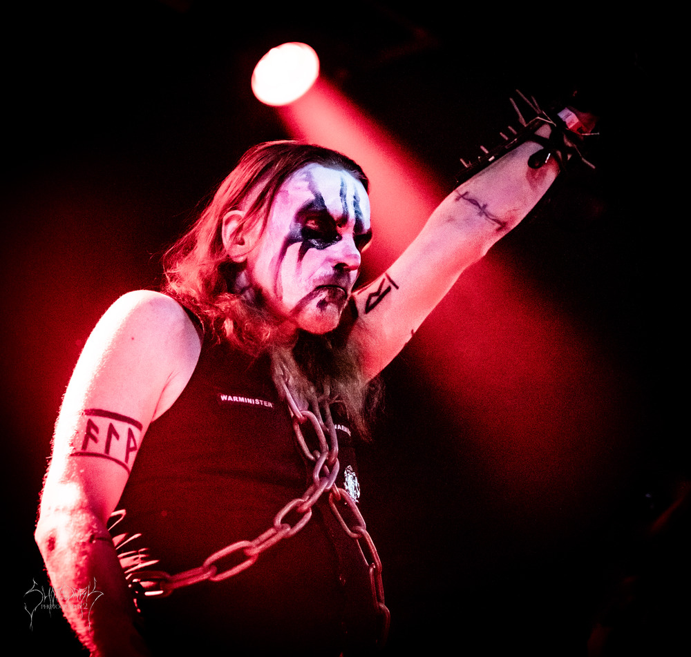 The audience quickly embrace what if I’m not mistaken are new tracks and as the set progressed and if my ears were not playing up it sounded like sampled violins and choral parts were embedded into what became an epic heathen clamour. A solid start to things.