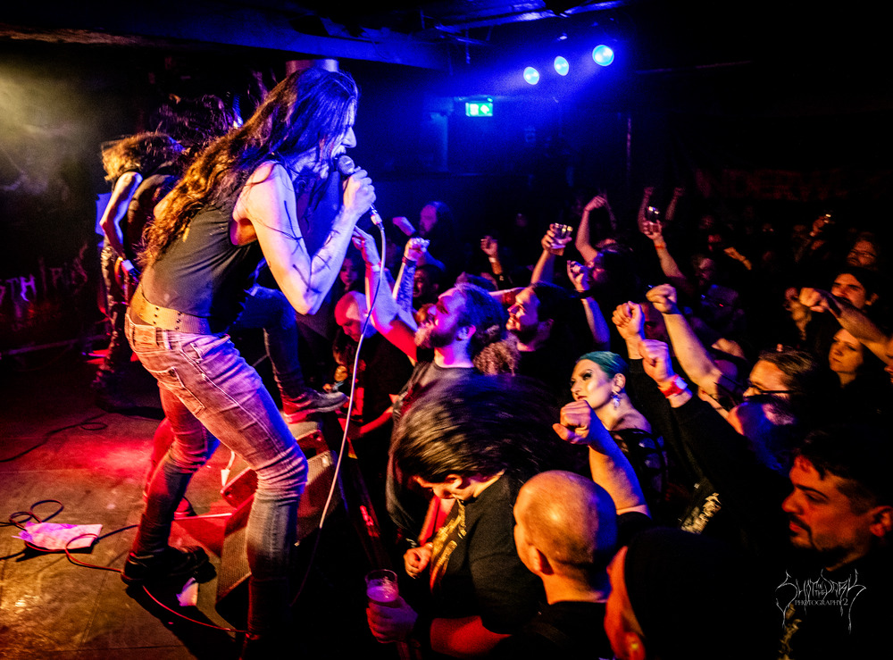 Having travelled the globe including Japan recently with members of bands such as Akercocke and Voices they instantly raise bruises and the crowd react violently in all the right ways. Things are well and truly Unleashed! David Gray blasterbates at the back and Sam Loynes holds court stage right.