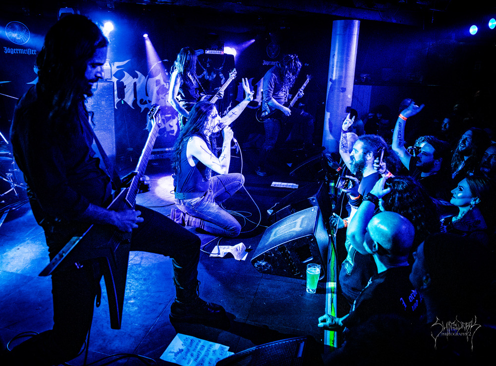 Starting out in the Underworld there’s a thrum inside as the first band of the day had the benefit of not clashing with anyone else. Ante-Inferno from North Yorkshire have the task of waking us up and after an orchestral intro set about doing so with drums pounding and antagonistic screams from vocalist K.B. ‘There’s No Light Til Life’s End’ apparently and there’s very little of it in the Underworld too.