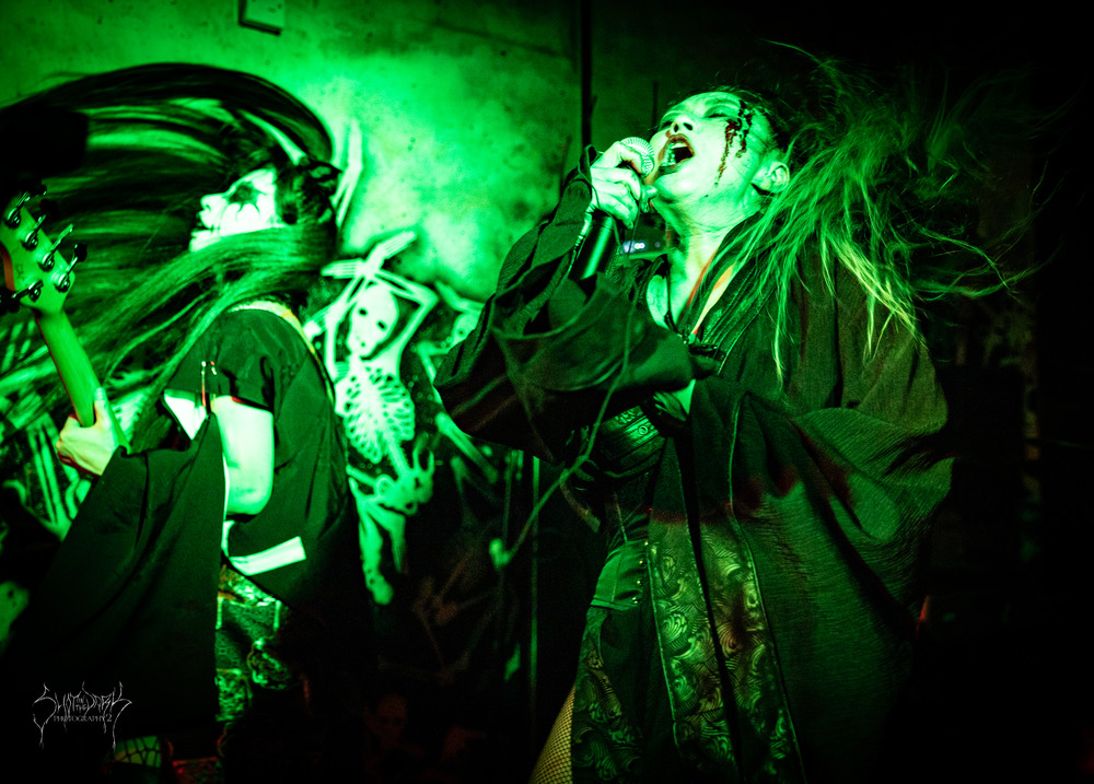 After a short turn around, and with the room now absolutely rammed, Sigh opened their set. Wearing a mixture of Japanese robes and Samurai attire and using corpse paint and blood on some members, the band were a perfect visualisation of their avant-garde, extreme/black metal and their Japanese heritage.