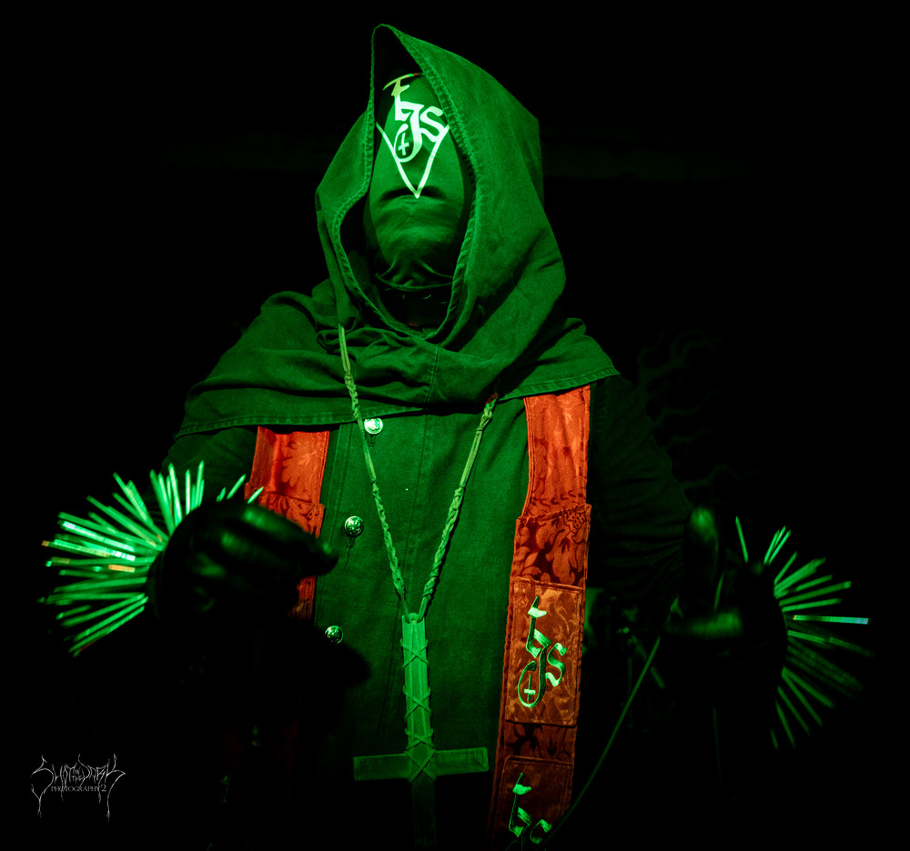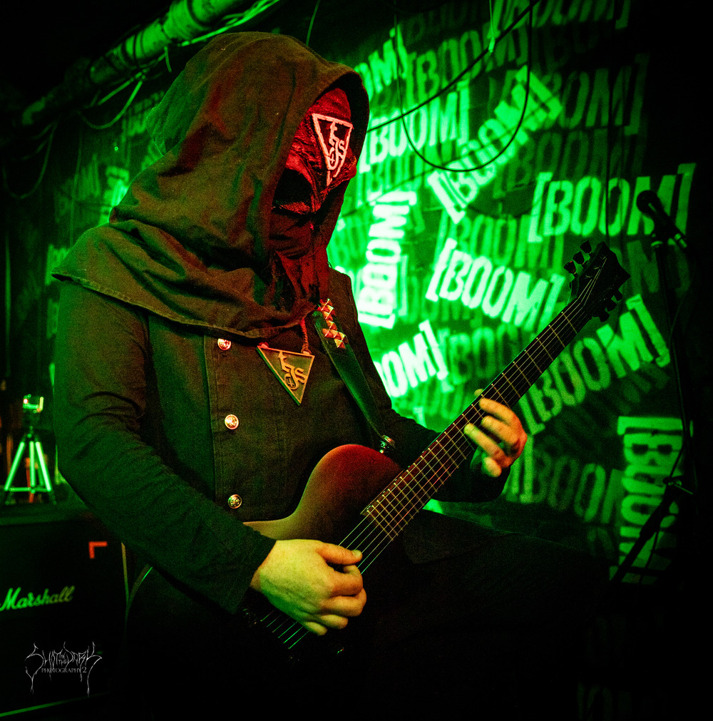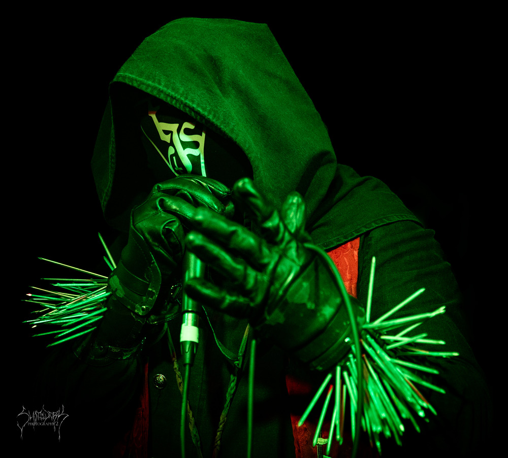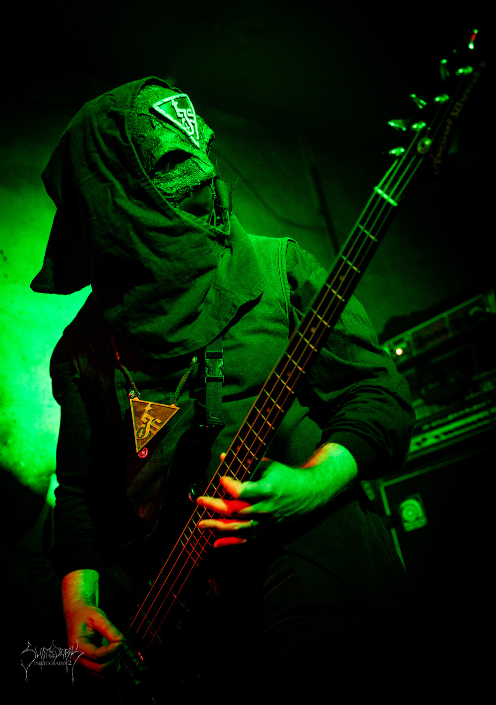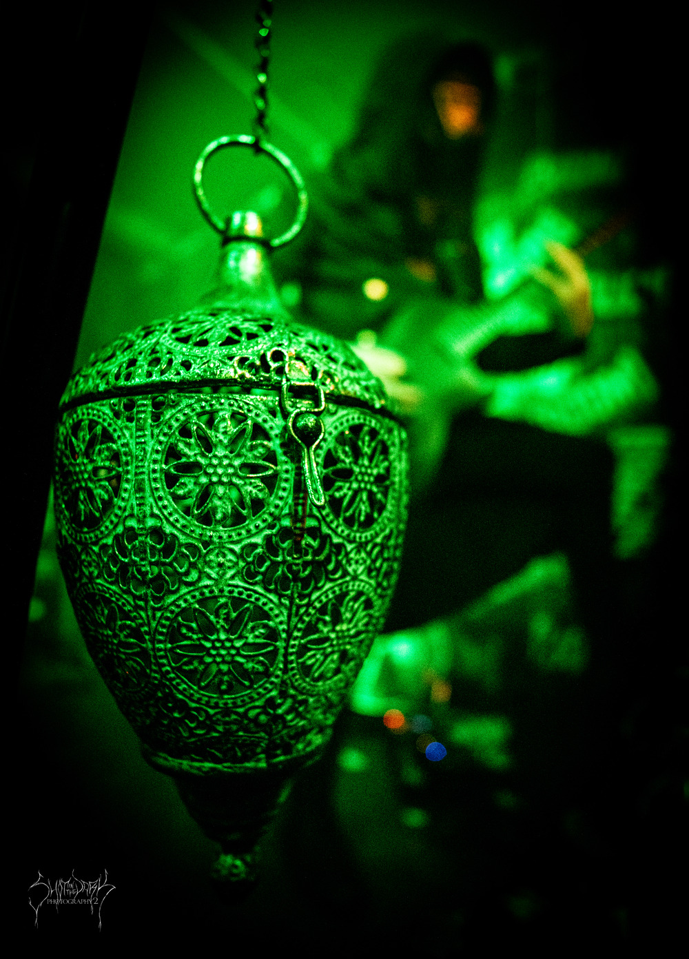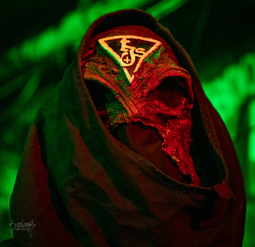 The room quickly filled as The Infernal Sea lanterns cast an eerie green glow as anticipation began to build. There were also plague doctor masks hanging either side off the stage, and I found myself wondering about the ironic relevance of these given the current MPox outbreak.